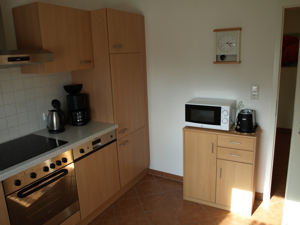 Die Küche ist voll ausgestattet inkl. Geschirrspüler und Herd/Backofen/Mikrowelle/Kaffeemaschine/Wasserkocher.