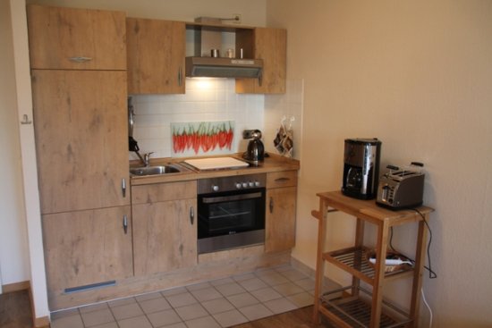 Das zeitgemäß eingerichtete Apartment befindet sich im Erdgeschoss, ist barrierefrei zugänglich, verfügt über eine Terrasse und einen festen Tiefgaragenstellplatz. Die Küche ist komplett bestückt und mit Herd, Backofen, Hochkühlschrank mit Gefrierfach, Wasserkocher, Kaffeemaschine und Toaster ausgestattet. Es stehen WLAN (kostenlos), Kabel-TV mit 80cm Flachbildschirm und ein Radio zur Verfügung.
